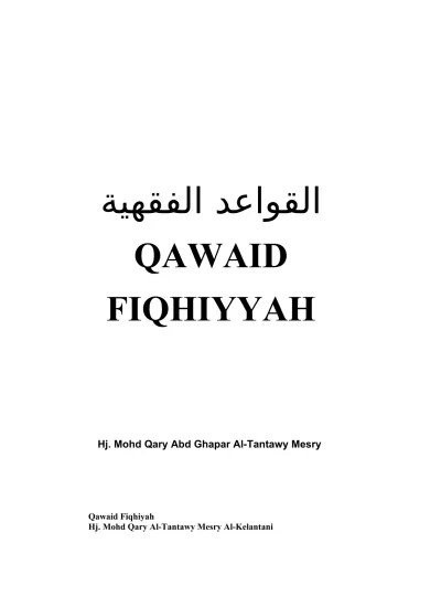 Ulama pertama yang melakukan pembukuan ilmu qawaid fiqhiyyah adalah ulama dari mazhab hanafi, yaitu abu hasan al karkhi (wafat 340 h). Qawaid fiqhiyah berasal dari bahasa arab yang terdiri dari dua suku kata, yaitu qawaid dan fiqhiyah. 26.09.2011 · awal mula qawaid fiqhiyyah menjadi disiplin ilmu tersendiri dan dibukukan terjadi pada abad ke 4 h dan terus berlanjut pada masa setelahnya. 18.09.2017 · qawaid fiqhiyah berasal dari bahasa arab yang terdiri dari dua suku kata, yaitu qawaid dan fiqhiyah. Segala macam tindakan tergantung pada tujuannya 2. Dalam risalahnya yang berjudul ushul al karkhi, abu hasan al karkhi … 27.09.2008 · menurut kami (pemakalah) bahwa qawaid fiqihiyyah adalah sebuah metamorfosa ilmu hokum yang tumbuh dan berkembang hingga sempurna itu tidak terlepas dari para pendahulu kita, berawal dari nabi muhammad saw. Para sahabat nabi, tabi'in, dan hingga tabi'i at tabi'in yang sangat berjasa dalam pengadaan dan penyempurnaannya. Wb dalam video saya kali ini, saya akan mempresentasikan makalah yan.